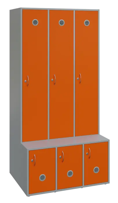 SSB - 180 - 90 šatní skříň s botníkem, 3-dvéřová, 1800x900x400/600 mm, korpus šedý, dvířka pomeranč