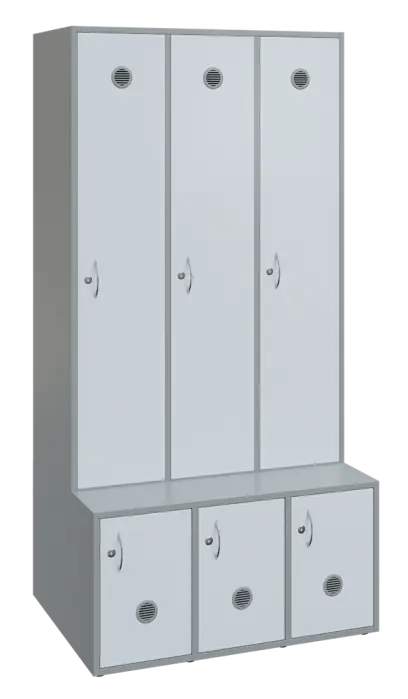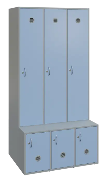 SSB - 180 - 90 šatní skříň s botníkem, 3-dvéřová, 1800x900x400/600 mm, korpus šedý, dvířka blankyt
