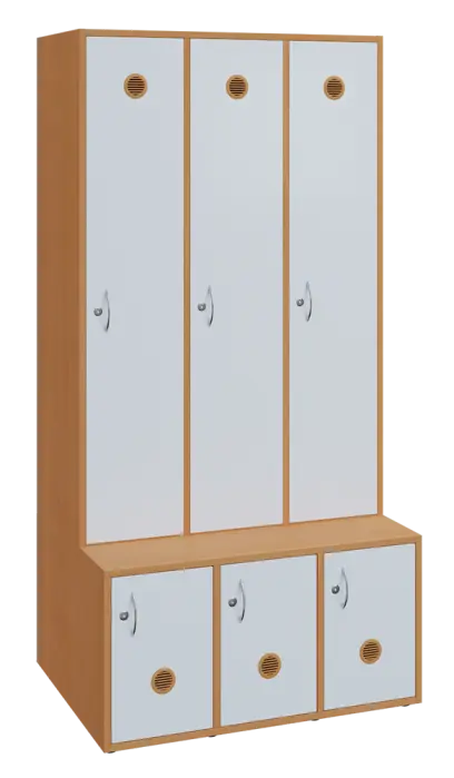 SSB - 180 - 90 šatní skříň s botníkem, 3-dvéřová, 1800x900x400/600 mm, korpus buk royal, dvířka bílá