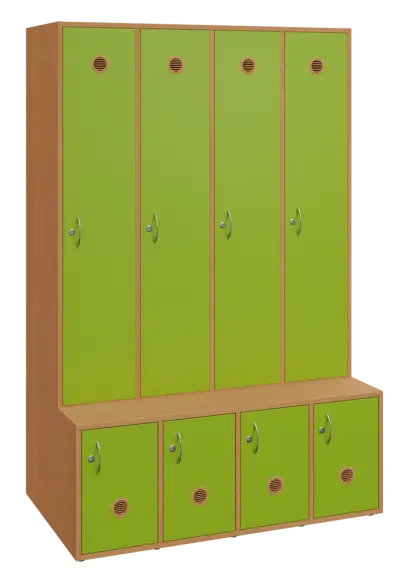 SBS-3333 šatní skříň 9-boxová, 1800x900x400 mm, kovové nohy, korpus buk royal, dvířka jarní zeleň