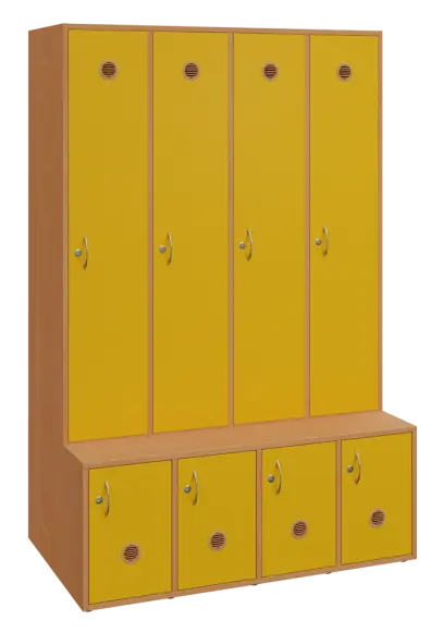 SBS-3333 šatní skříň 9-boxová, 1800x900x400 mm, kovové nohy, korpus buk royal, dvířka žlutá odio