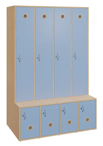 SBS-3333 šatní skříň 9-boxová, 1800x900x400 mm, kovové nohy, korpus buk royal, dvířka blankyt