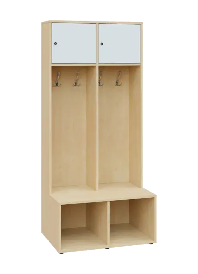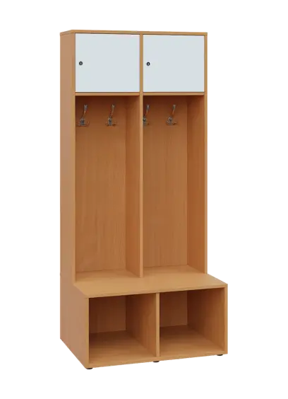 celolaminové otevřené šatní skříně jsou koncipované do sportovišť a šaten, ve vrchní části je vsazena uzamykatelná skříňka, osazena kvalitním zámkem se 2 klíči