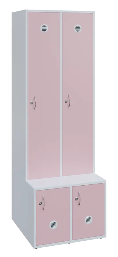 SSB - 180 - 60 šatní skříň s botníkem, 2-dvéřová, 1800x600x400/600 mm, korpus bílý, dvířka pastelově růžová