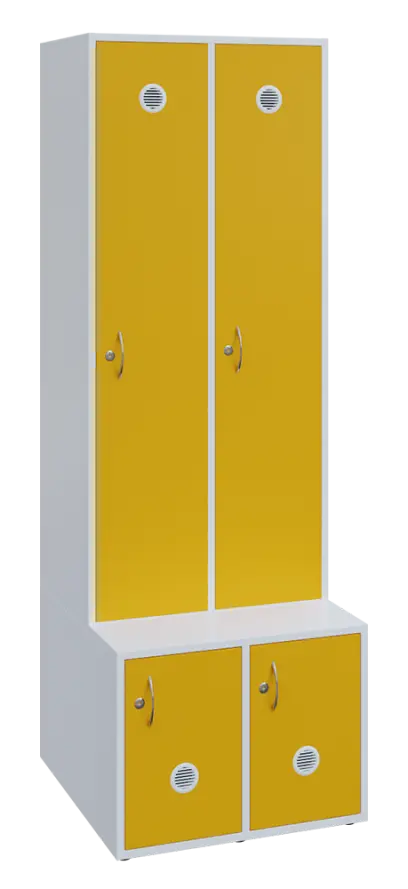 SSB - 180 - 60 šatní skříň s botníkem, 2-dvéřová, 1800x600x400/600 mm, korpus bílý, dvířka žlutá odio