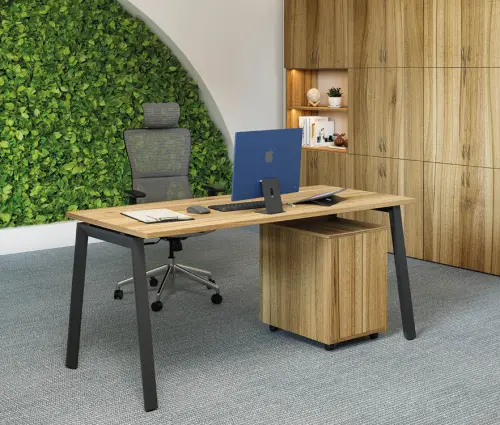 kancelářský stůl se stabilní podnoží, kovová podnož ve tvaru "A" opatřena rektifikací, barevné provedení stříbrná nebo černá
