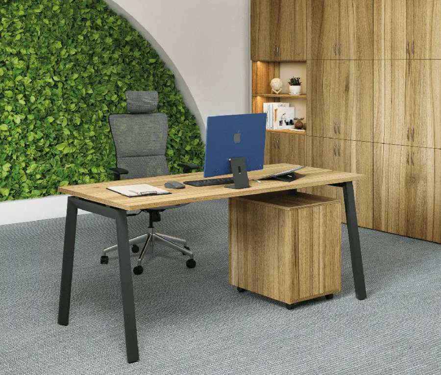 kancelářský stůl se stabilní podnoží, kovová podnož ve tvaru "A" opatřena rektifikací, pojízdný kontejner, centrální zámek