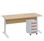 novinka inspirovaná barvou roku 2025, kancelářský stůl se stabilní podnoží, povrchová úprava kovové podnože práškovým vypalovacím lakem, pojízdný kovový kontejner se 4 zásuvkami, v horní zásuvce umístěn tužkovník