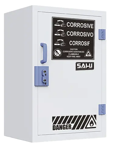 skříně jsou navrženy speciálně pro skladování a zabránění úniku vysoce žíravých (korozivních) chemikálií jako např. kyselina sírová, kyselina chlorovodíková, kyselina dusičná, kyselina octová