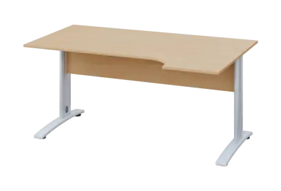 BRK 18 - 164 stůl pracovní, rohový, pravý, kovová podnož bílá, deska 18 mm, široký 1600 mm, bříza světlá