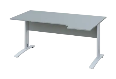 BRK 18 - 164 stůl pracovní, rohový, pravý, kovová podnož bílá, deska 18 mm, široký 1600 mm, šedá