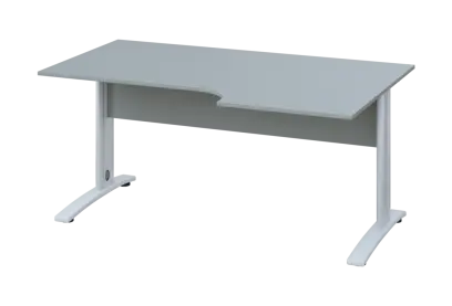 BRK 18 - 166 stůl pracovní, rohový, pravý, kovová podnož bílá, deska 18 mm, široký 1600 mm, šedá