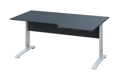 BRK 18 - 166 stůl pracovní, rohový, pravý, kovová podnož bílá, deska 18 mm, široký 1600 mm, antracit