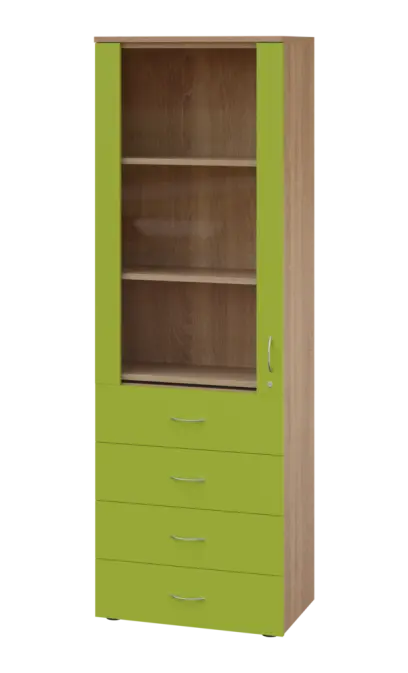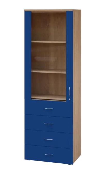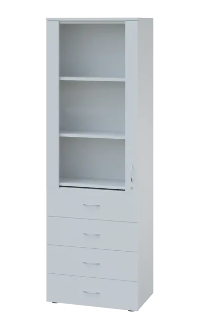 lékařská prosklená skříň, vyrobeno z kvalitního lamina o síle 18 mm, ABS hrana pro zvýšení životnosti, vybaveny výsuvnou odkládací deskou