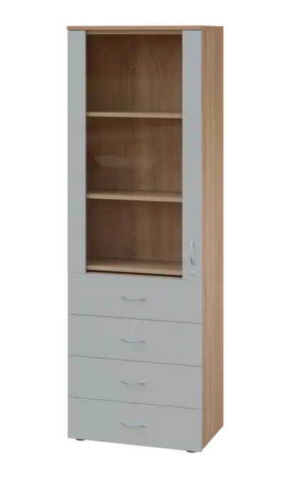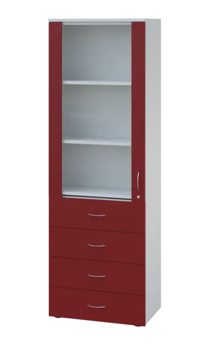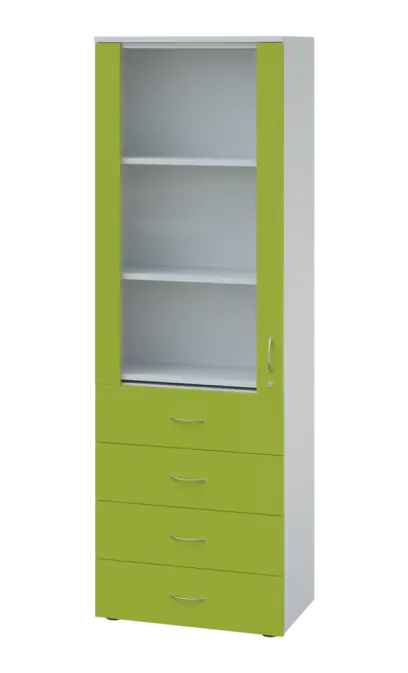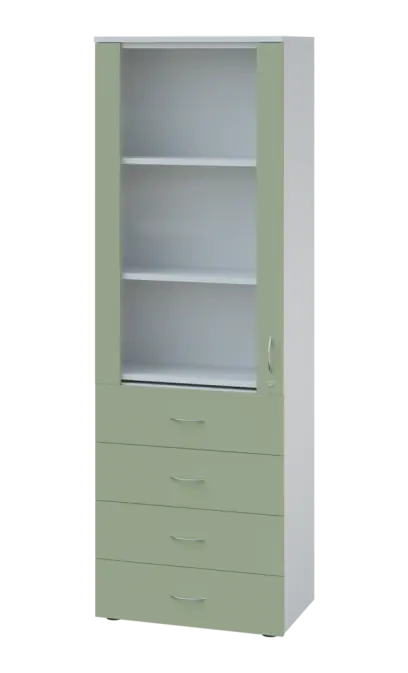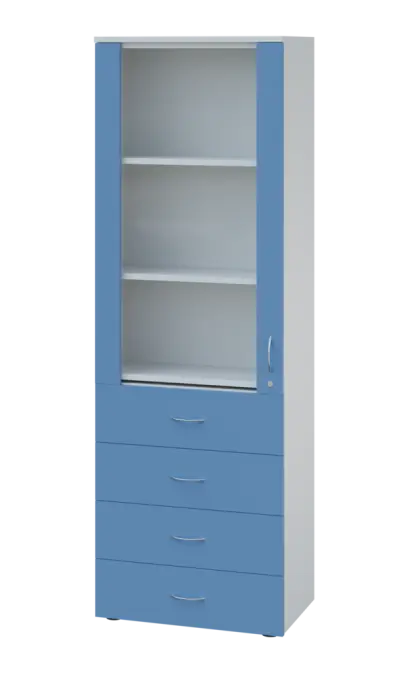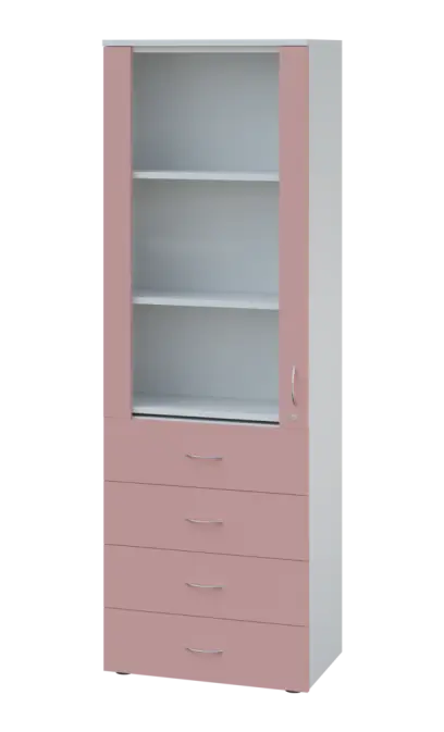 lékařská prosklená skříň, vyrobeno z kvalitního lamina o síle 18 mm, ABS hrana pro zvýšení životnosti, vybaveny výsuvnou odkládací deskou