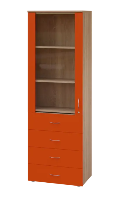 LE - 64 skříň léková prosklená, levá, korpus dub bardolino, dvířka mandarinka
