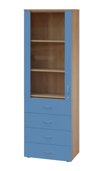 LE - 64 skříň léková prosklená, levá, korpus dub bardolino, dvířka královská modř