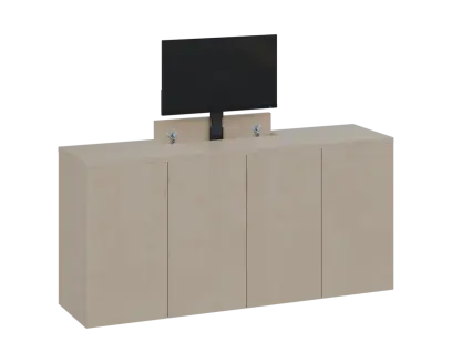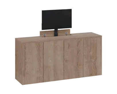 skříně NVM s elegantním a praktickým řešením pro uložení monitoru či televize pomocí integrovaného výsuvného mechanismu, jednoduché ovládání pomocí dálkového ovládání