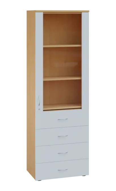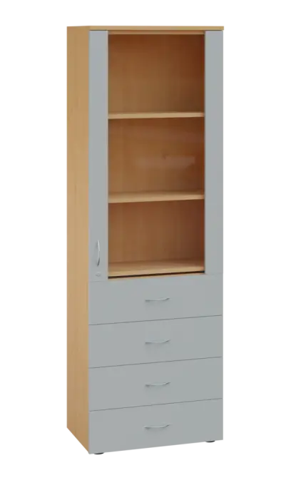 LE - 64 skříň léková prosklená, pravá, korpus javor horský, dvířka šedá