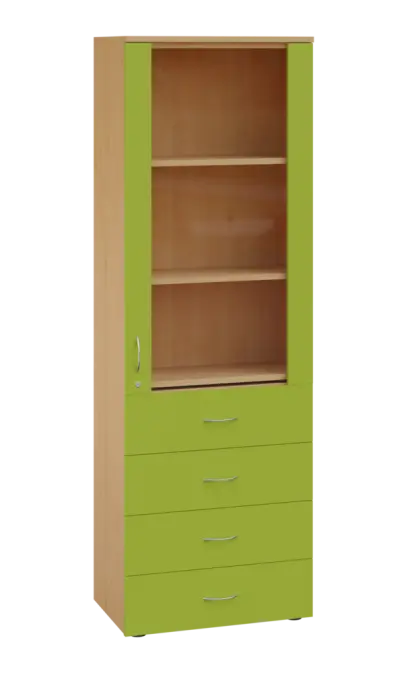 LE - 64 skříň léková prosklená, pravá, korpus javor horský, dvířka jarní zeleň