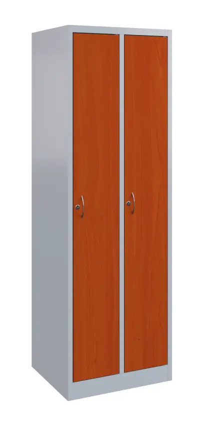 JPLA - 600 šatní skříň kovová, dveře dřevěné, 2-dílná, 1850x600x500 mm, šedá/třešeň šumavská