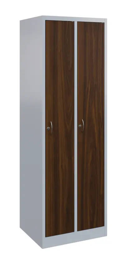 JPLA - 600 šatní skříň kovová, dveře dřevěné, 2-dílná, 1850x600x500 mm, šedá/ořech královský