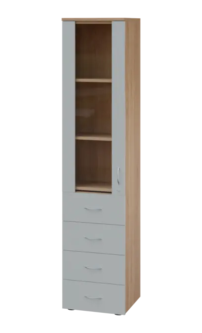 LE - 44 skříň léková prosklená, levá, korpus dub bardolino, dvířka šedá