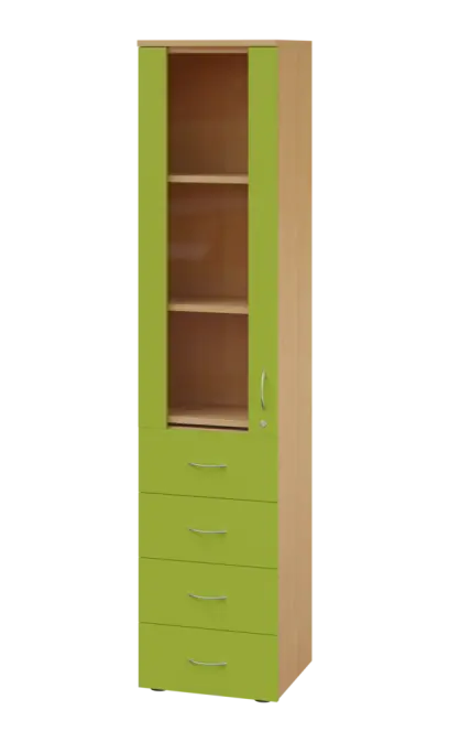 LE - 44 skříň léková prosklená, levá, korpus javor horský, dvířka jarní zeleň