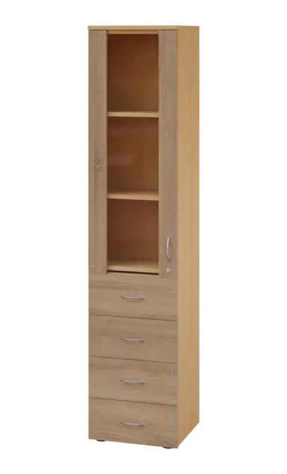 LE - 44 skříň léková prosklená, levá, korpus javor horský, dvířka dub bardolino