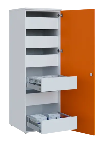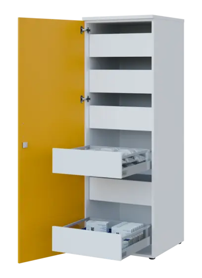 zásuvkové lékařské skříně zajišťují snadnou manipulaci, přehlednost a maximální využití prostoru, zásuvky se snadno vysouvají a zasouvají i při plném zatížení