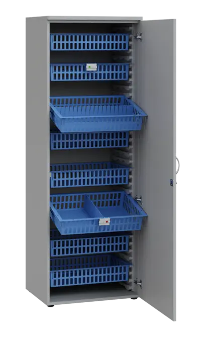 Skříně EUROMEDICA s koši MEDIBOX = nejpraktičtější uspořádání léků a zdravotnického materiálu