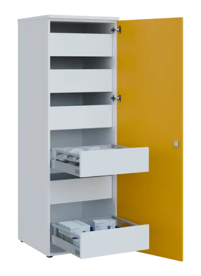 zásuvkové lékařské skříně zajišťují snadnou manipulaci, přehlednost a maximální využití prostoru, zásuvky se snadno vysouvají a zasouvají i při plném zatížení