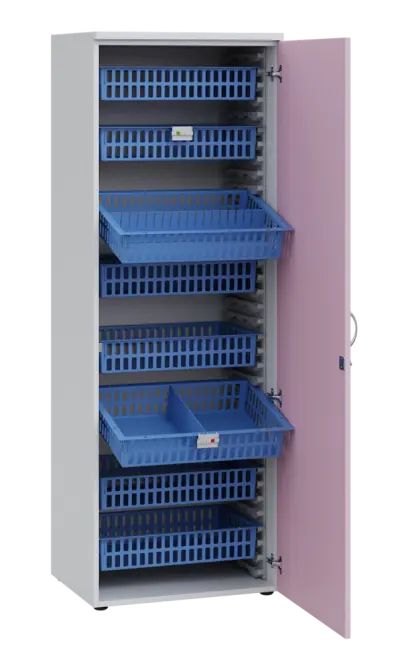 MEDICAL D - 66/M skříň léková boxová, 1950x660x535, korpus bílý, dvířka pastelově růžová