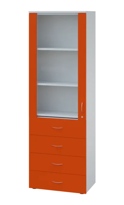 LE - 64 skříň léková prosklená, levá, korpus bílý, dvířka mandarinka