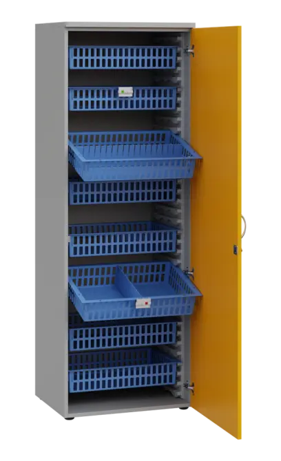 MEDICAL D - 66/M skříň léková boxová, 1950x660x535, korpus šedý, dvířka žlutá odio