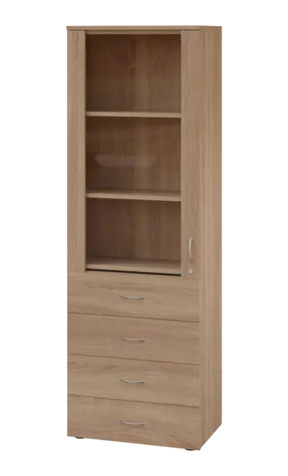 LE - 64 skříň léková prosklená, pravá, korpus dub bardolino, dvířka mandarinka