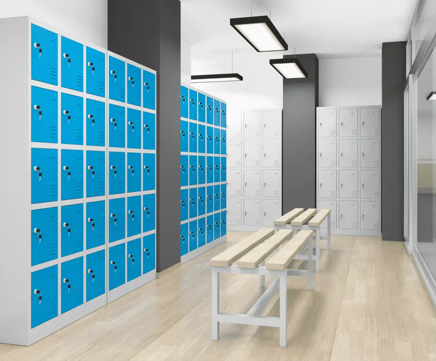 šatní lavička, sedací plocha z masivního dřeva, 450x1500x330 mm, konstrukce šedá