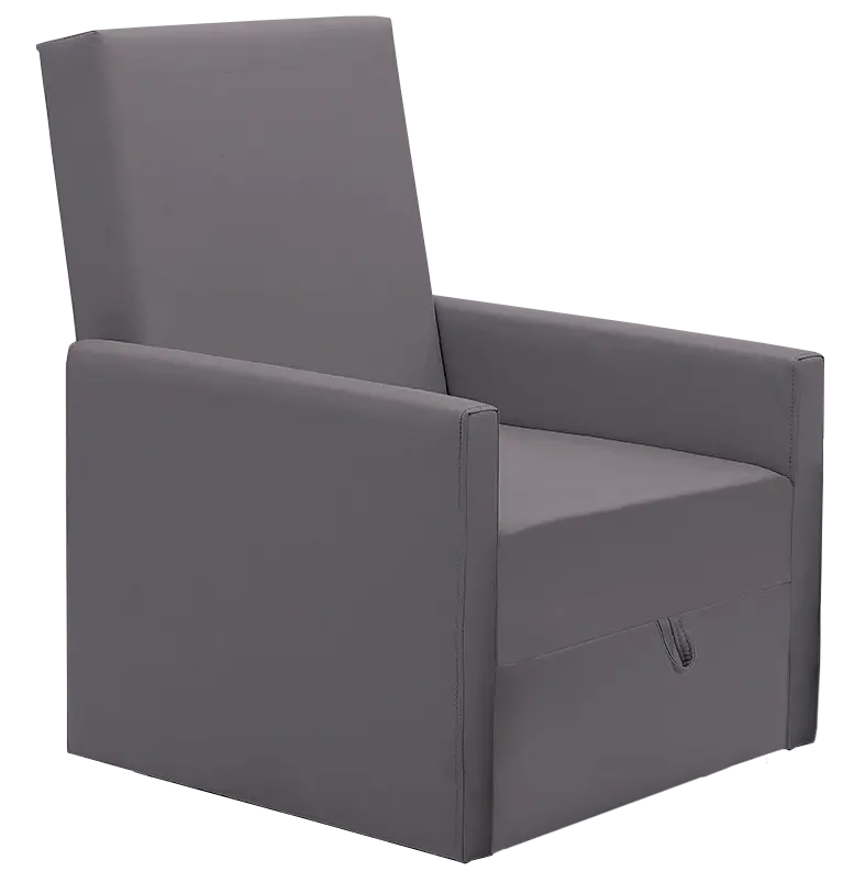 rozkládací křeslo pro občasné přespání, pohodlné křeslo/lůžko se 3 sekcemi a područkami, čalouněno v kvalitní kožence, odolný kovový rám