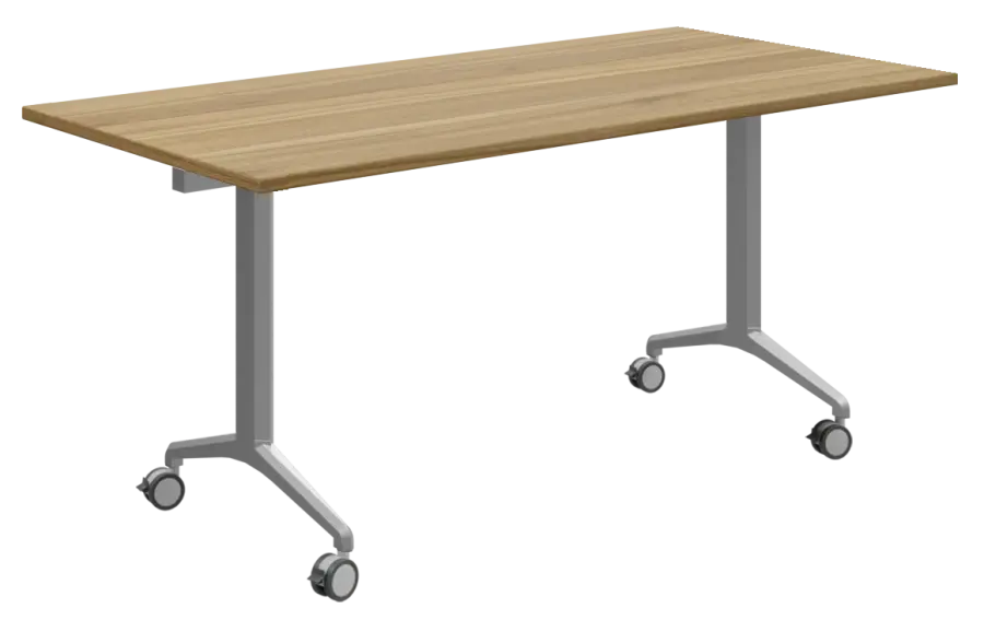 pojízdný skládací stůl, 740x1600x700, nohy stříbrný lak, deska ořech světlý