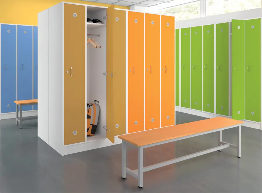 šatní lavička, deska lamino šedá, 450x2000x330, konstrukce šedá