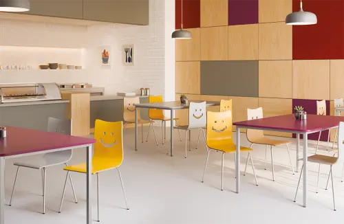 stohovatelné překližkové židle atraktivního designu, sedák a opěrák z bukové překližky potažený odolnou laminátovou fólií