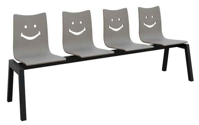 4-místná čekárenská lavice s překližkovými sedáky a svařovanou robustní ocelovou kostrou v černém laku