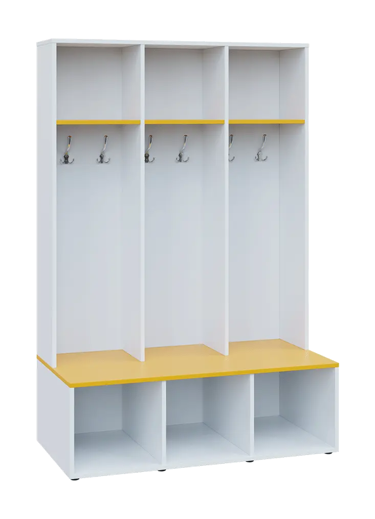 celolaminové otevřené šatní skříně jsou koncipované do sportovišť a šaten, otevřená šatní část obsahuje 2x trojháček