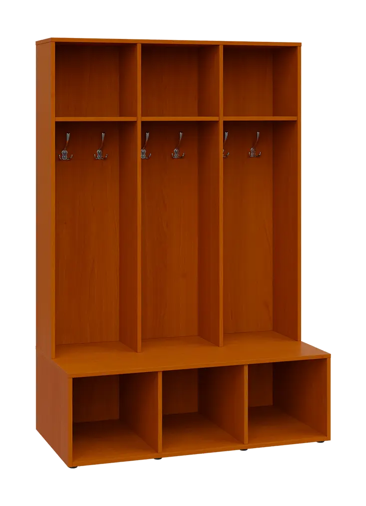 celolaminové otevřené šatní skříně jsou koncipované do sportovišť a šaten, otevřená šatní část obsahuje 2x trojháček