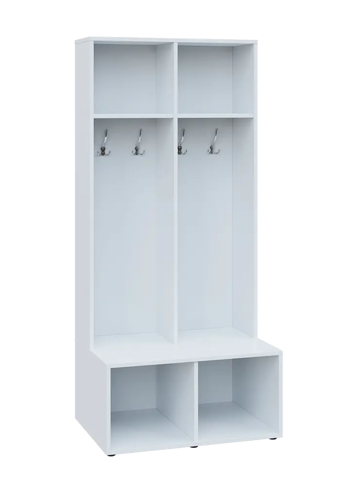 celolaminové otevřené šatní skříně jsou koncipované do sportovišť a šaten, otevřená šatní část obsahuje 2x trojháček