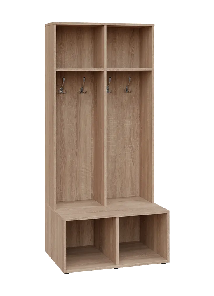 celolaminové otevřené šatní skříně jsou koncipované do sportovišť a šaten, otevřená šatní část obsahuje 2x trojháček