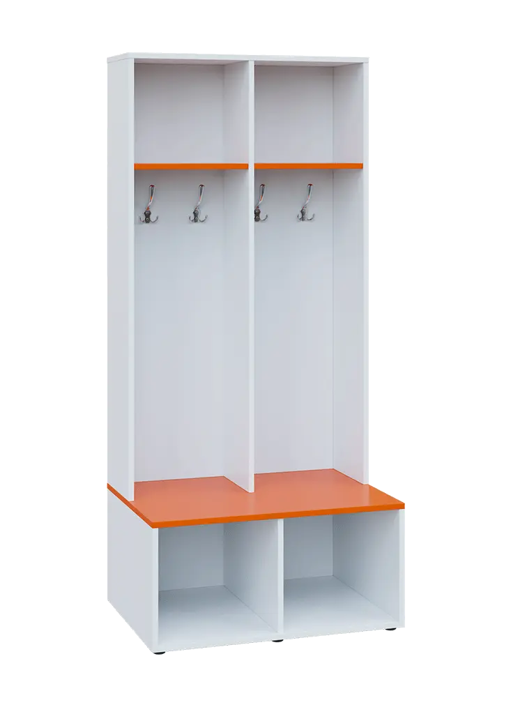 celolaminové otevřené šatní skříně jsou koncipované do sportovišť a šaten, otevřená šatní část obsahuje 2x trojháček