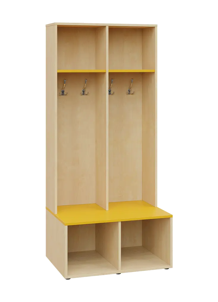celolaminové otevřené šatní skříně jsou koncipované do sportovišť a šaten, otevřená šatní část obsahuje 2x trojháček