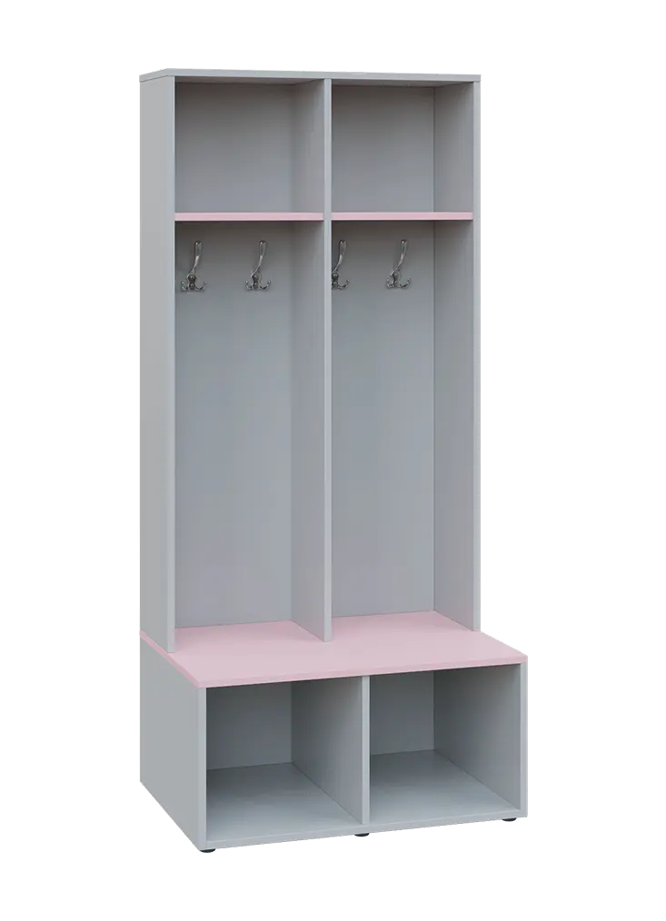 celolaminové otevřené šatní skříně jsou koncipované do sportovišť a šaten, otevřená šatní část obsahuje 2x trojháček
