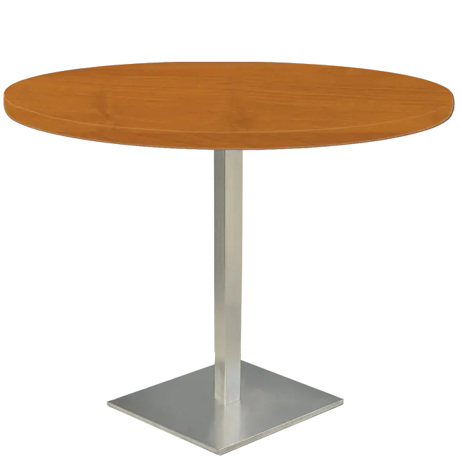 stůl kulatý, deska pr. 900 mm, síla desky 25 mm, noha broušený nerez, deska olše jantar